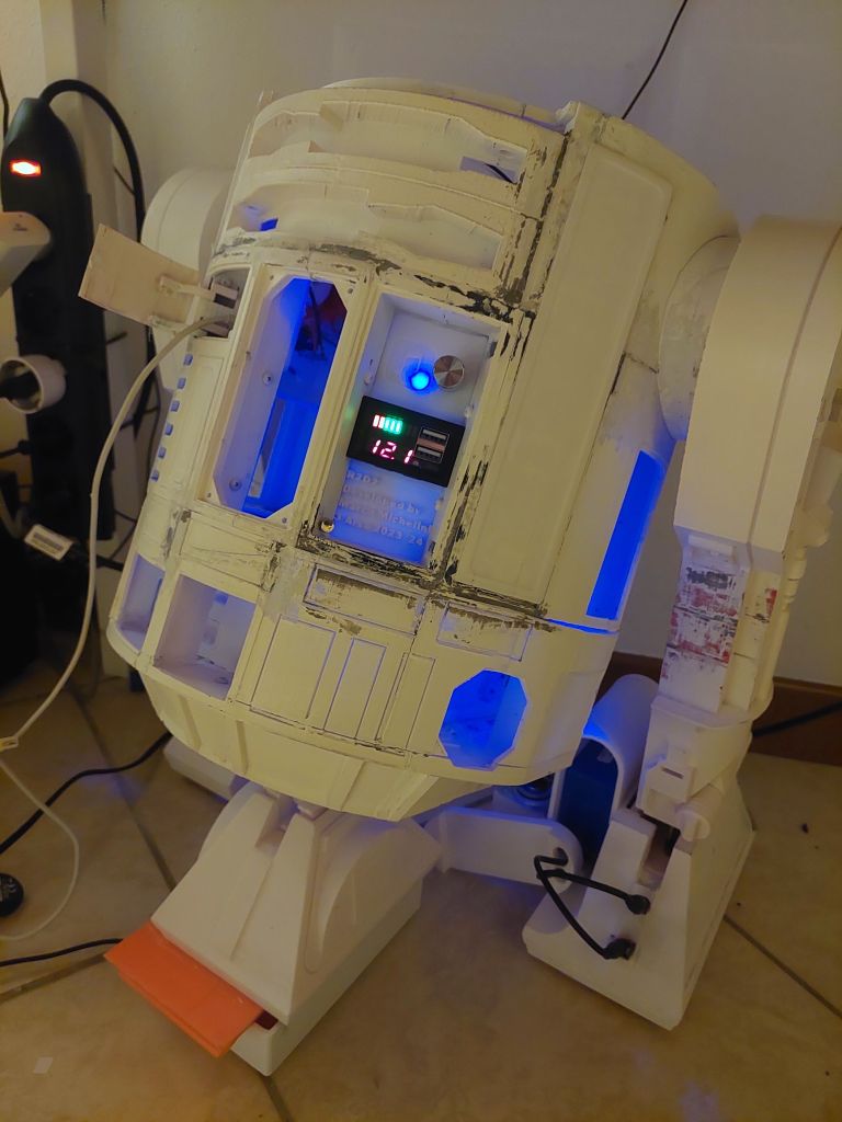 Ho tentato di utilizzare una powerbank per cellulari da 50W usando un elevatore di tensione (la batteria eroga 5V mentre r2 funziona a 12V) ma si è bruciato.